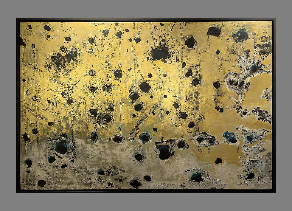 Materials: Natural lacquer, linen, soil powder, aluminium powder